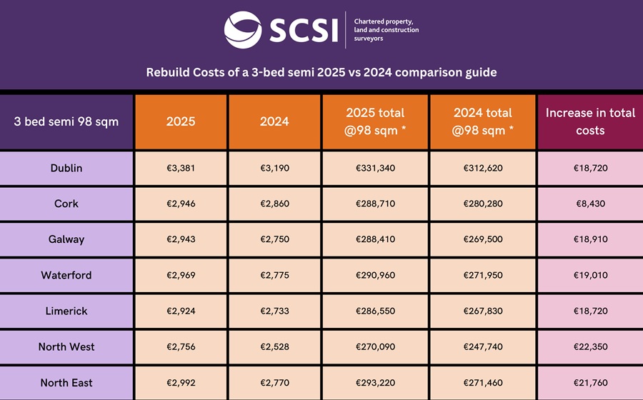 The SCSI’s House Rebuilding Calculator and the 2025 Guide to House Rebuilding Costs is available free at https://scsi.ie/calculator